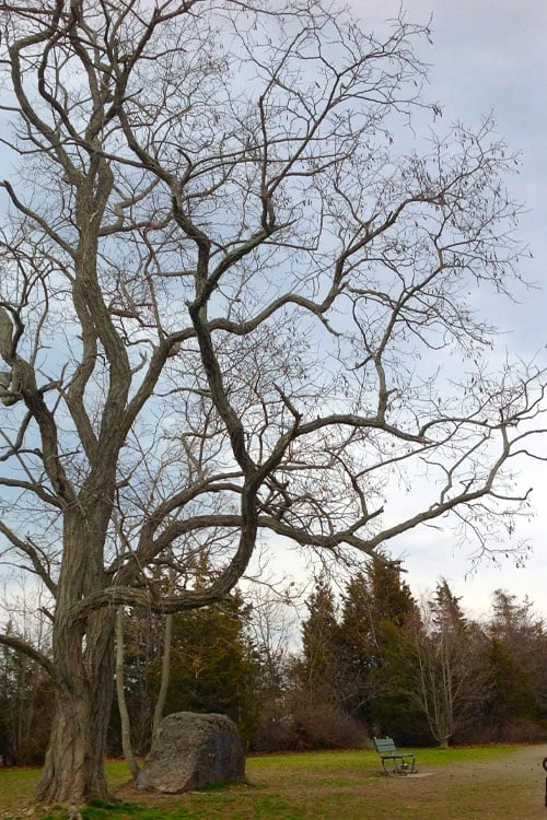 Originally native to the southern Appalachians and the Ozarks, the Black Locust can now be found in all lower 48 states. It is a large growing tree boasting both attractive flowers and attractive compound foliage. In full bloom you’d think it was a giant Wisteria tree! In late spring to early summer, abundant wisteria-like racemes of very fragrant, creamy white, pea-like flowers dangle from every stem on the tree. The flowers have a heavenly sweet-pea aroma mingled with the scent of intensified orange blossom, attracting hummingbirds, butterflies and many other beneficial pollinators. We’ve heard the flowers are edible and very tasty, but we always suggest doing your own research before eating them. It has pinnate dark blue-green leaves up to 14 inches long, with each leaf having up to 23 lance to oval shaped leaflets. Its deeply furrowed bark and curvy branches provide winter interest. A fast grower that might reach 50 to 70 feet in height and 30 to 50 feet wide, it can be kept to a single trunk though is a suckering tree excellent for use on difficult sites for naturalization, such as a soil stabilizer on embankments or along sunny woodland borders where soil is poor and not mulch else will grow. Resistant to drought, dry soil, pollution, alt, and almost any type of soil, this is a tree anyone can grow.