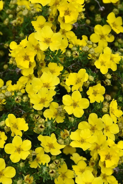 Shrubby Cinquefoil is very easy to grow in most any moist but well-drained soil of average to low fertility, including rocky and clay soils, and in full sun to part shade. We suggest at least 5 hours of direct sunlight per day for best flowering and foliage density. Well-drained soil is a must as this plant does not like a constantly soggy or wet soil. Amend heavy clay or other compact soils to ensure good drainage. It is very drought tolerant when established. Pest and disease free and deer and rabbit resistant. Plants can be trimmed lightly after flowers and any old stems can be removed to encourage new growth.