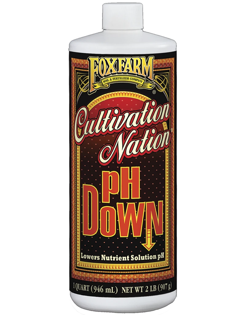 Cultivation Nation pH DOWN lowers the pH of nutrient solutions. An ideal pH range for growing plants is 5.6 – 6.8. Shake well before use.