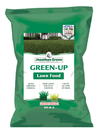 Jonathan Green’s Green-Up Lawn Food is a quick, deep greening fertilizer that can be used on all types of turf grass and will feed the lawn for up to three months. The polymer coated nitrogen in this product provides a slow and steady food release, preventing a surge of grass growth in the early spring, which reduces grass clippings when mowing. Green-Up is the best fertilizer to use in the early spring if crabgrass is not present.