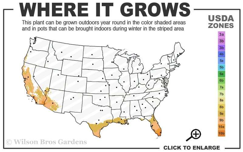 USDA Cold Hardiness Zones:Â 9a-11Â Find Your Zone